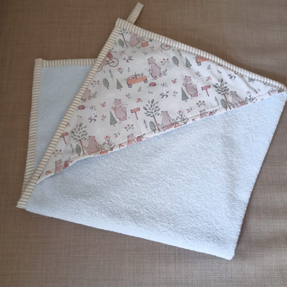 Accappatoio neonato a triangolo – confezionato in spugna di cotone 100% – cappuccio doppiato con tessuto a fantasia