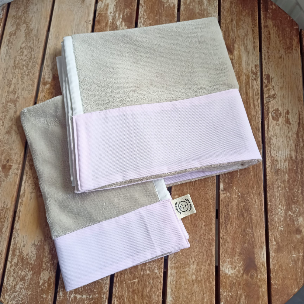 Coppia asciugamani di spugna in bambù con bordo tinta unita  in puro cotone 100%