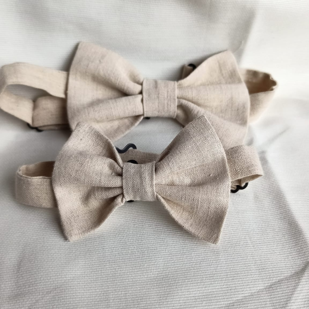 Coppia papillon per papà e bambino confezionati in tessuto misto lino e cotone color sabbia