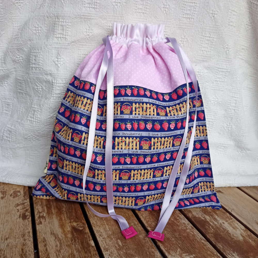 Sacchetta porta cambio in tessuto di cotone 100% a fantasia con nome ricamato