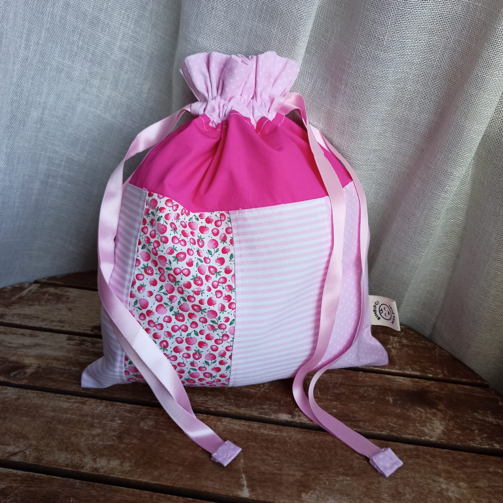 Sacchetta porta cambio in tessuto di cotone 100% a fantasia con nome ricamato