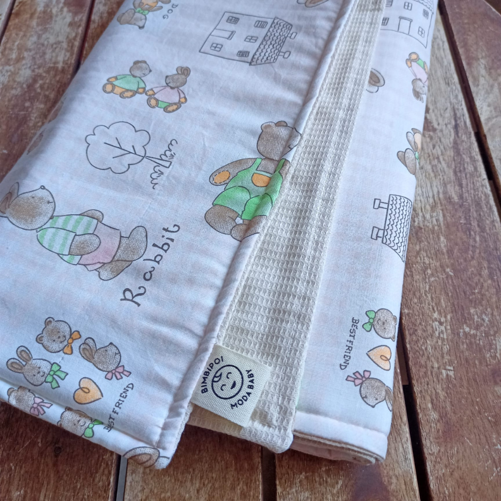 Trapuntina in cotone fantasia e tinta unita double face imbottitura naturale antiallergica.